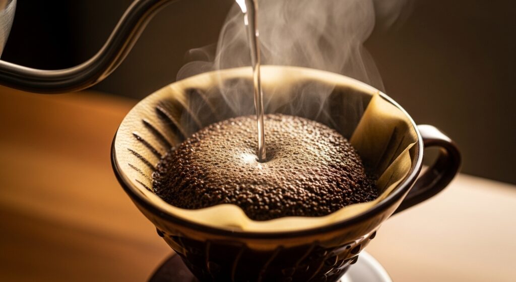 O café passado, conhecido como coado ou de filtro, é a forma clássica de preparo. Sua essência reside na extração lenta de sabores e aromas de grãos moídos através de água quente. Esse método preserva os óleos naturais, responsáveis pela complexidade do sabor e corpo da bebida. O processo envolve moer grãos (idealmente na hora), aquecer água (90°C a 96°C) e despejá-la uniformemente sobre o pó. O resultado é uma bebida limpa, aromática, com nuances que variam conforme a origem e moagem. Para muitos, o preparo é um ritual, uma pausa na correria, culminando em uma xícara que celebra a tradição. É a escolha dos puristas e de quem busca uma experiência sensorial completa.