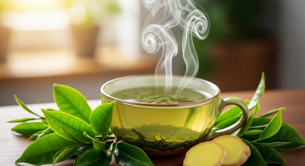 O Chá Verde é, sem dúvida, um dos mais populares e estudados. Rico em catequinas, especialmente a epigalocatequina galato (EGCG), ele é conhecido por aumentar a termogênese (produção de calor no corpo), acelerando o metabolismo e promovendo a oxidação de gorduras. Sua leve ação diurética também ajuda a combater a retenção de líquidos, reduzindo o inchaço e contribuindo para uma sensação de leveza. Beber chá verde regularmente pode otimizar a queima de calorias, especialmente durante a prática de atividades físicas, tornando-o um excelente aliado na perda de peso e na busca por uma barriga mais lisa.